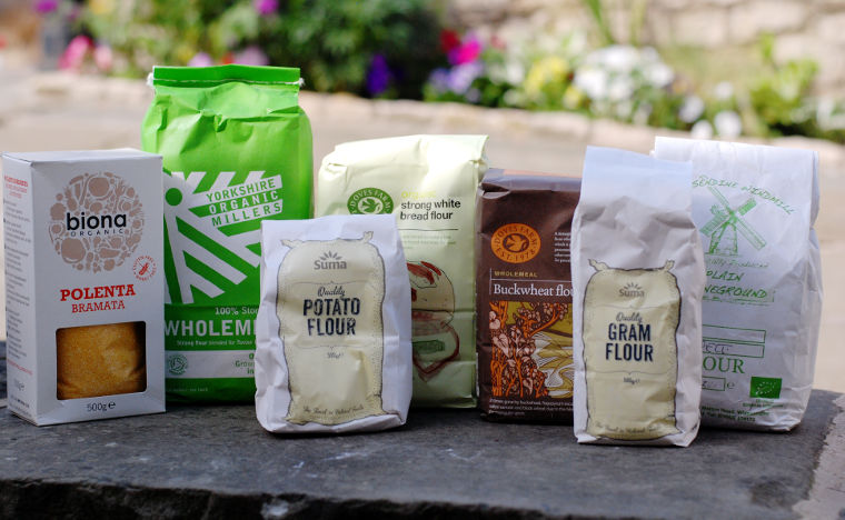 A wide variety of specialist flours, for instance for breadmaking and gluten free (eg. rice flour).
